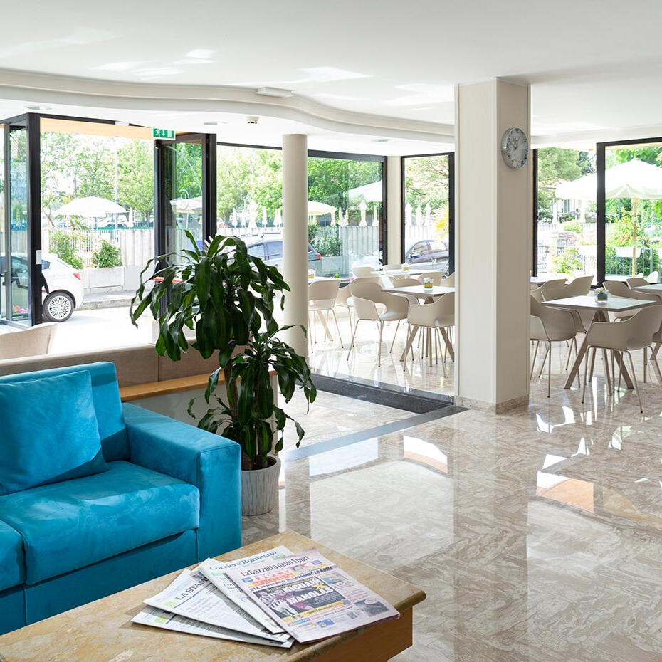 ogni mattina ti aspetta la nostra rinomata Colazione del Benessere (dalle 07:30 alle 11:00): torte e biscotti fatti in casa, croissant, pancake, frutta fresca, yogurt, cereali, uova, salumi e formaggi, acque detox con menta-lime, zenzero-limone e cetriolo. Puoi scegliere cappuccini con latte fresco, senza lattosio o di soia, e caffè espresso come al bar. Il modo perfetto per iniziare la tua vacanza estiva al mare a Misano Adriatico con la giusta energia!