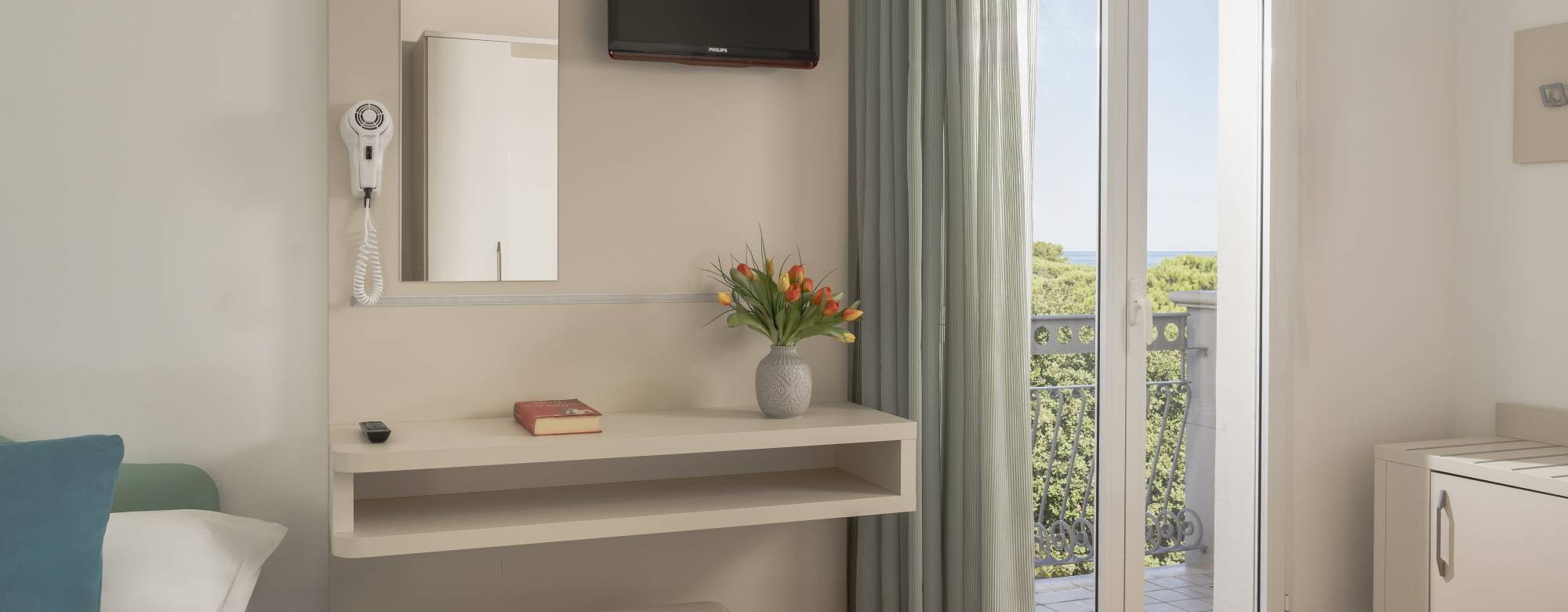 Give yourself the privilege of seeing everything from above .. on the fifth floor there are the SEA VIEW rooms! Equipped with a very large balcony, a real private panoramic terrace, you can admire the sunrise, the Romagna hills or the sea.
