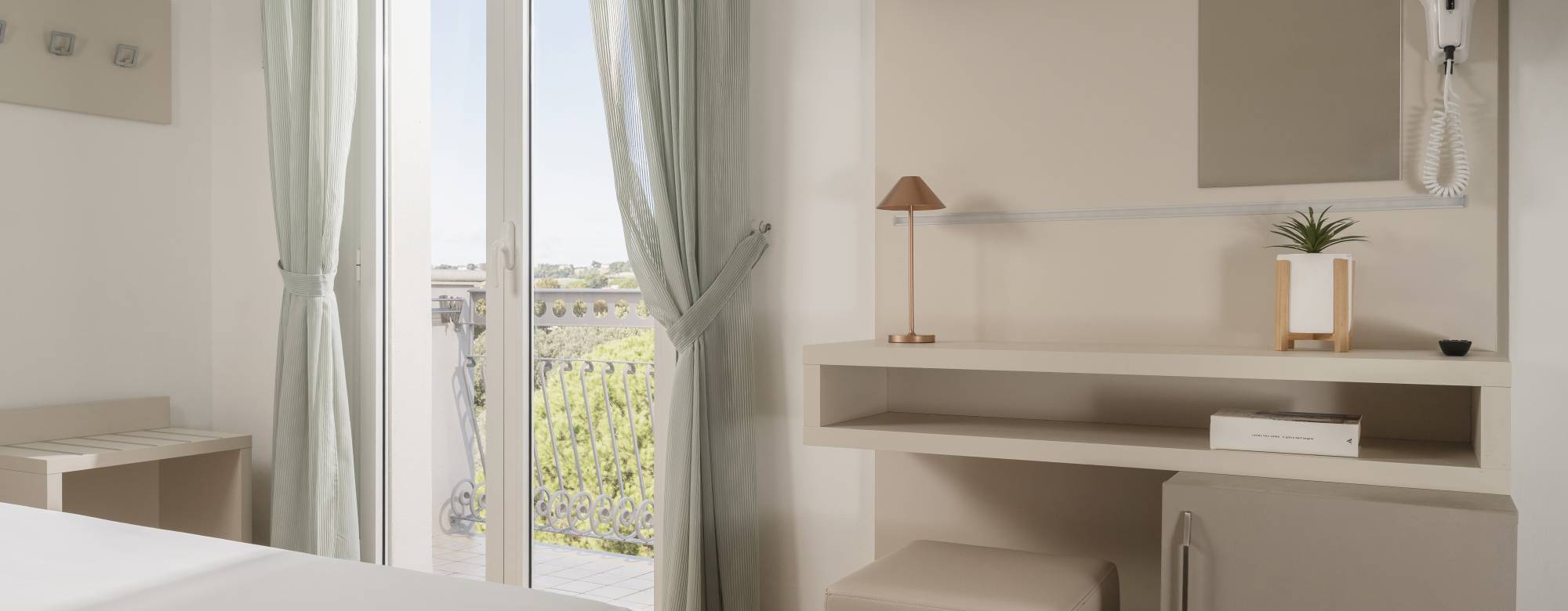 Our rooms welcome you with a fresh, modern style, without giving up the warmth of Italian hospitality. Natural materials, soft lighting, and carefully designed spaces make each room a little haven of comfort and well-being — ideal for unwinding after a day of sun and sea.