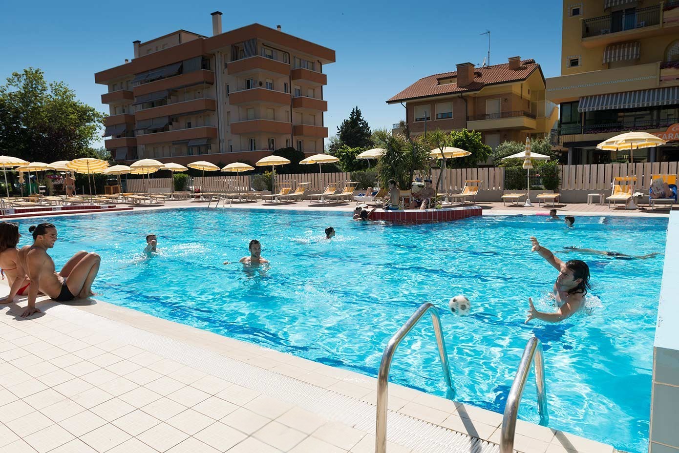 Immagina di svegliarti con il sole che splende e la libertà di scegliere: un tuffo rigenerante, un momento di relax nell’idromassaggio o un pomeriggio di giochi e risate con i tuoi bambini. All’Hotel Caravel B&B di Misano Adriatico ti aspetta una grande piscina con solarium, perfetta per vivere ogni momento della vacanza nel massimo comfort.